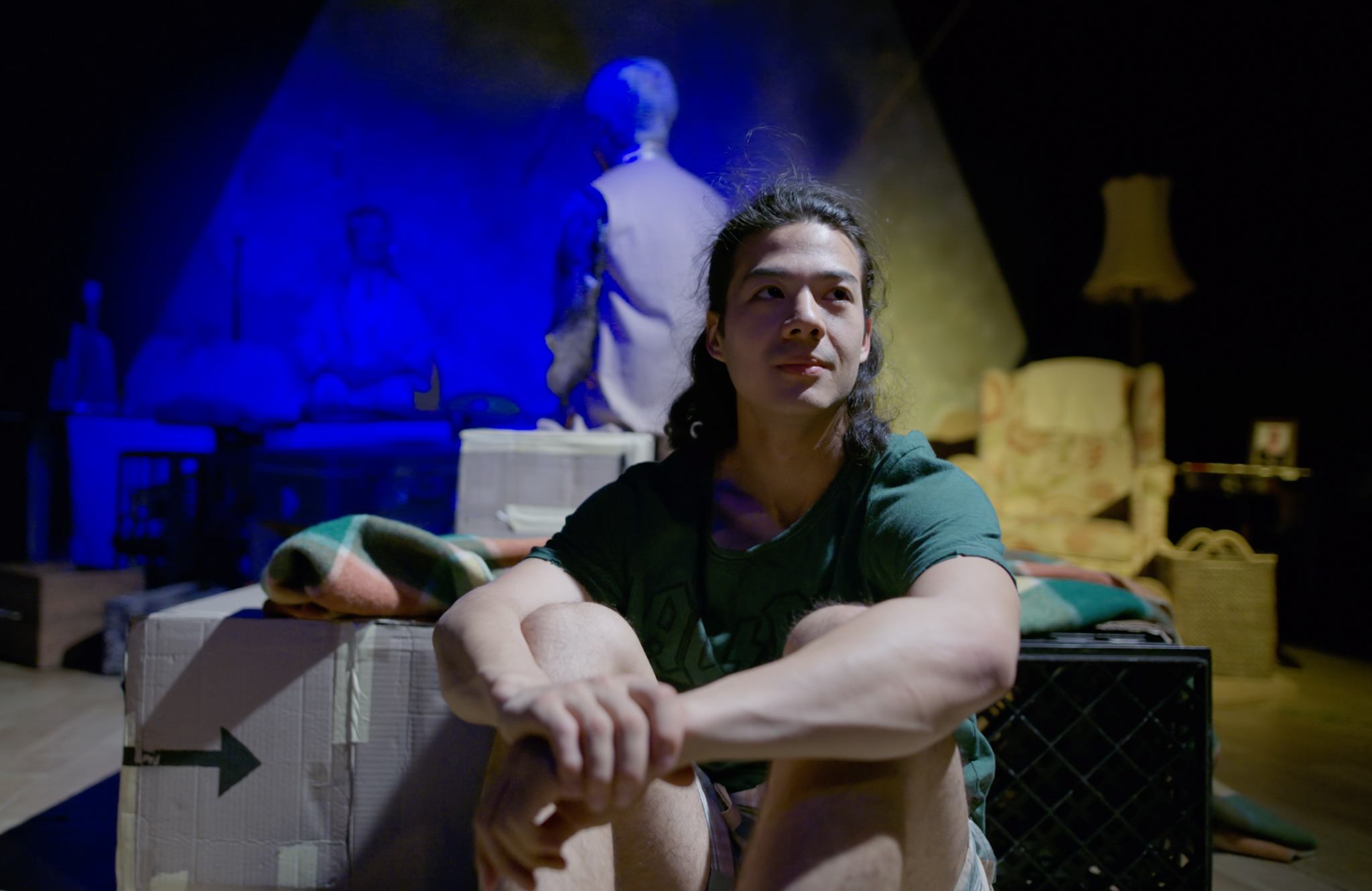 Foo’s playwriting craft is sound, his imagination better and his performance endearing, and debut director Monica Sayers has astutely blocked the show for KXT’s traverse stage. There are missteps, however. When we arrive, the stage is littered with covered boxes and props, the latter gradually contributing to Heepa’s decoration of an A-frame stepladder “Christmas tree” across the play’s 70 minutes.