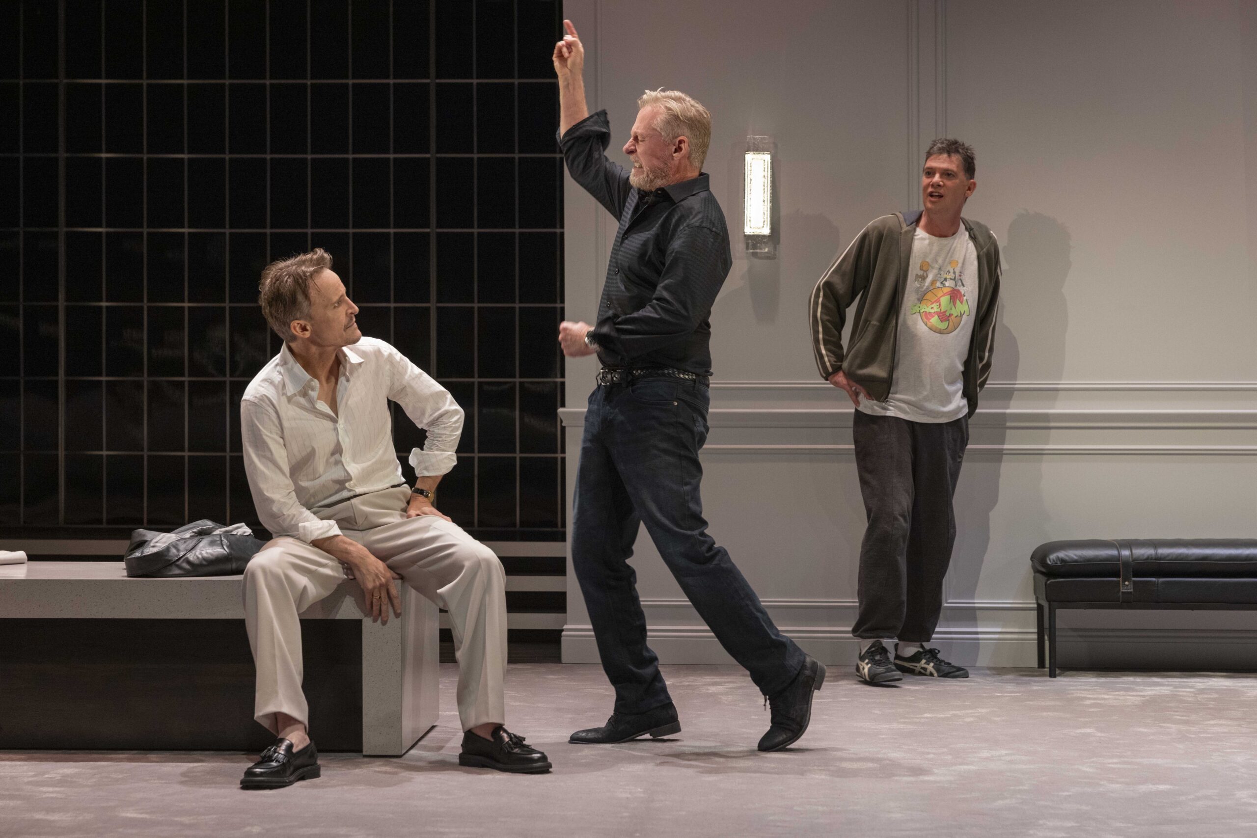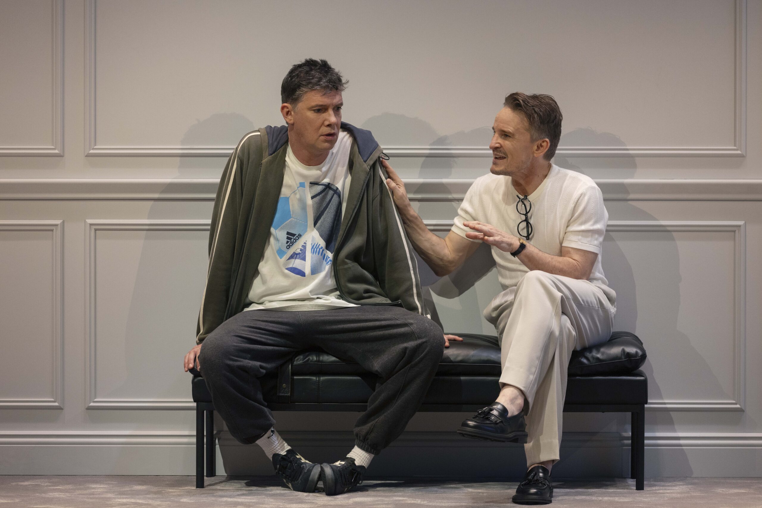 Charles Davis’s 1990s costumes excessively delineate the differences between the three, however: Serge in the connoisseur’s garb of tailored pale suit over turtle-necked top; Marc casual in denim and leather; Yvan beyond casual in tee-shirt and trackies. It makes them look improbable friends before the friction starts to sting, as Reza pokes a stick into the wasps’ nest of taste, meaning, pretension and craft in modern art, and the seeming randomness of stardom. She simultaneously interrogates the nature of friendship, and how we may evolve away from the original bonds.
