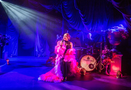Now here’s a puzzle. The Hayes’ Theatre artistic directors, Richard Carroll and Victoria Falconer, wanted a show celebrating Barbra Streisand, and asked Brittanie Shipway to direct it as well as perform in a cast of four. The creative team Shipway assembled has resulted in a sumptuous stage design from Brendan de la Hay (defined by meticulously swagged fabrics and an avalanche of hydrangeas), superbly lit by Peter Rubie, and with well-chosen songs expertly played by Nicholas Gentile and his band.