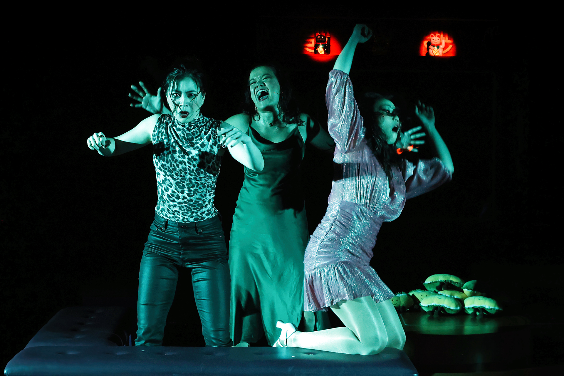 Tong sets her play in Money Money Karaoke, a newborn bar run by Mandy (Tong) and Xavier (Zac Boulton). On the opening night, they’re short on customers until the ghosts of Mandy’s grandmother (Kimie Tsukakoshi) and mother (Seong Hui Xuan) arrive, and embark on a little remodelling of Mandy’s life.