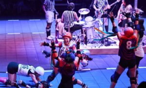 You enter to find people skating around an oval on the Town Hall’s floor. Different, you think. Last year, it was the wild west; this year a roller-skating rink. You sit and watch these helmeted women going around and around, forwards, and then, clearly aware of the need for entertainment value, backwards. What I didn’t know at the time was that this was as good as the show got.