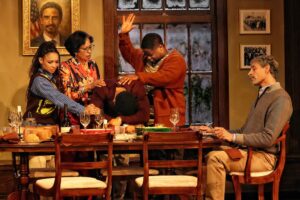 The flaws in Okenyo’s production come when the melodrama holds too much sway, and the anger is too relentless. In all other regards, this is an exemplary production of a singular play that would swiftly expose pretenders in the cast. Okenyo’s is strong, with Markus Hamilton as the sternly patriarchal, deeply flawed Solomon. Deni Gordon plays Claudine, and while she has minor lapses, she’s convincing as the only person on earth who can lord it over Solomon.