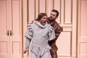 It’s as though the play’s seen through a kaleidoscope of gender-distorting mirrors, or twisted into a puzzle that must be deciphered at every turn. This adds another layer of confusion, when Shrew already deals in subterfuge and mistaken identity, and it neither illuminates the text nor compounds the comedy.